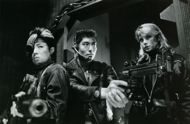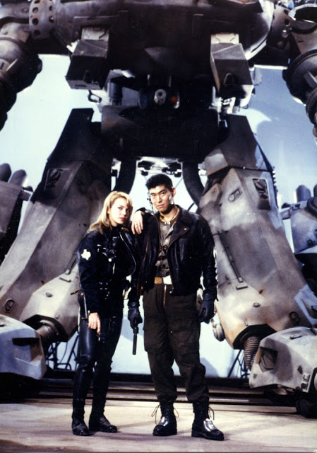 Brenda Bakke and Masahiro Takashima on the set of Gunhed. Gunhed © 1989, Toho Co., Ltd.
