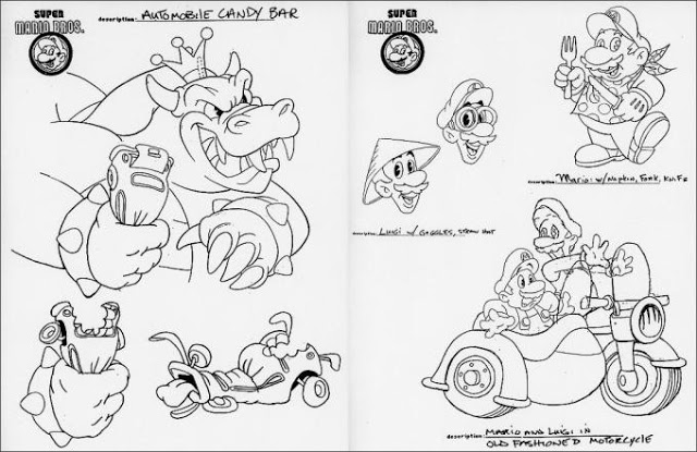 PM: The bible was written by Bruce and Reed Shelly. Reading it, you could tell that they were still struggling to get a handle on the show. I mean, the core problem was obvious: There are no real characters or stories in a Nintendo game, so how do you turn one into a TV series? The bible indicated that Mario and Luigi would have a jokey rivalry like Bob Hope and Bing Crosby from the old Road pictures, with Mario being the fun-loving adventurous type, and Luigi being timid and cowardly. The Koopa was described as a big, ugly reptile with a personality like Don Rickles. Princess Toadstool and Toad were very thinly defined.