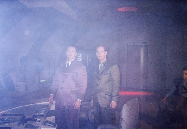 Chuck Wilson (left) on the Mother Ship set of Godzilla vs. King Ghidorah with co-star Richard Berger. Photo © Richard Berger.
