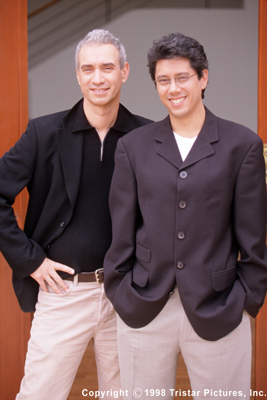 Director Roland Emmerich (left) poses with producer Dean Devlin during Godzilla’s publicity tour. Photo © 1998, TriStar Pictures, Inc.