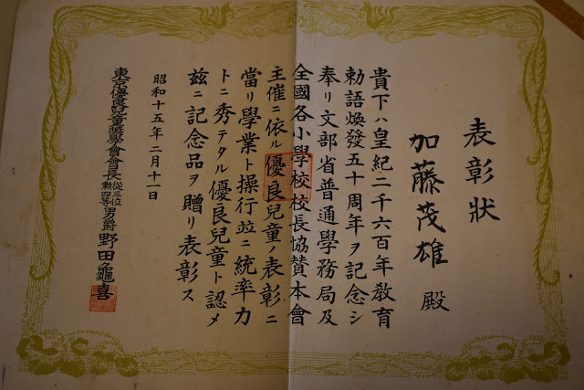 Shigeo Kato’s award from the Japanese Ministry of Education, dated February 11, 1940. Photo © Brett Homenick.