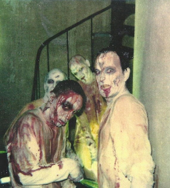 Anyway, around the time, Spirit was doing costume mascot performances (I was Mickey Mouse, ALF, Big Bird, an acrobatic ninja, and even Batman in a parade), and I was simultaneously wondering how else I’d make ends meet, cashier Ed Martinez said, “Guess what?! I’m doing special effects in a movie where a zombie is thrown off a tower, and I want you to play that zombie!” Store owner Joe Marver (who’d later sell Spirit to Spencer’s), was totally understanding that I wouldn’t be available for my part-time position at the store — and, if anything, was amused that his minimum-wage manual laborer would be soon working with actor Jeremy Slate! I enjoyed hanging out with Jeremy Slate and producer Jack A. Sunseri on The Dead Pit set.