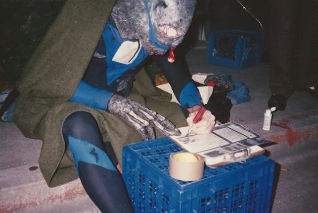 DF: I remember the film’s production coinciding with the beginning of the now-national chain Spirit Halloween. Then called Spirit Costume & Party Supply, I was one of the store’s very first employees. Ed Martinez and I were hired when Spirit was just a large warehouse full of boxes. Spirit’s humble beginning was on Foothill Blvd., in Hayward, CA. We were both hired at the huge store (not yet open to the public, being 1986) because we were able-bodied young men who could climb ladders and move heavy boxes. But our knowledge of the materials (costumes, monsters, cinema, special effects, movie genres, props, and ancient cultures) had a lot to do with it as well. When Spirit opened, my hours were cut, and I didn’t always like being a store clerk. But, man, lots of crazy stories from those years! That’s a topic all on its own.