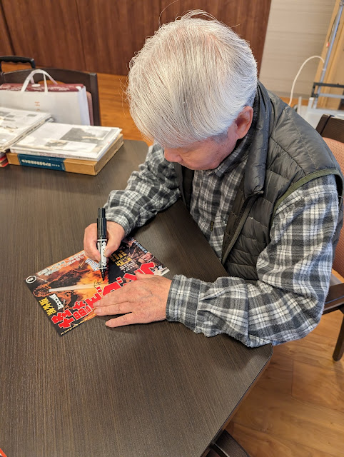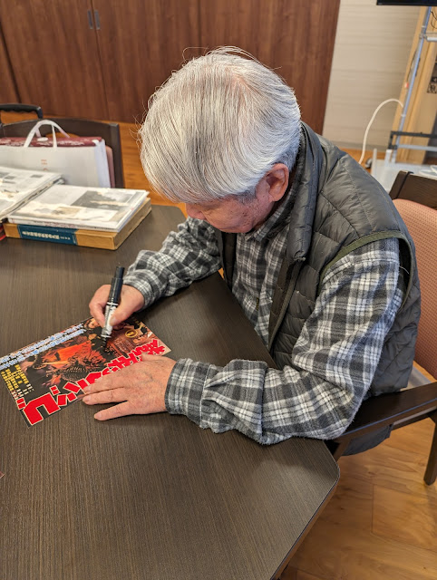 While a privileged few, such as Ishiro Honda and Eiji Tsuburaya, usually receive credit as being the authentic creators of Godzilla, it’s literally true in the case of Yoshio Suzuki. Hired on a part-time basis to help build the original Godzilla suit in 1954, Mr. Suzuki was one of just five modelers who brought cinema’s undisputed King of the Monsters to life in his first film. In the late 1950s, after working on a variety of other kaiju suits, Mr. Suzuki became a camera assistant at Toho before joining the studio’s art department in 1961. In 1968, Mr. Suzuki ultimately became an art director on the Tsuburaya Productions TV series Mighty Jack. The mid-1980s saw Mr. Suzuki travel to North Korea to work on Pulgasari (1985), one of Asia’s most fascinating, and mysterious, kaiju epics. In March 2024, Mr. Suzuki, joined by his wife Mitsuyo, answered Brett Homenick’s questions in an interview translated by Maho Harada.
