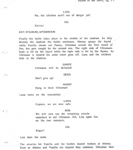 BR: First, let me say that it was a real joy to be writing something that I knew was going to be produced. Other than my student films, I had not had that experience. By 1993, I had written four or five spec features, none of which had gotten traction yet. I had written treatments for another half-dozen films, but none of those had been greenlit either. I had a lot of nice script binders on my bookshelf and no professional writing credits to show for it. Ultraman changed that for me.