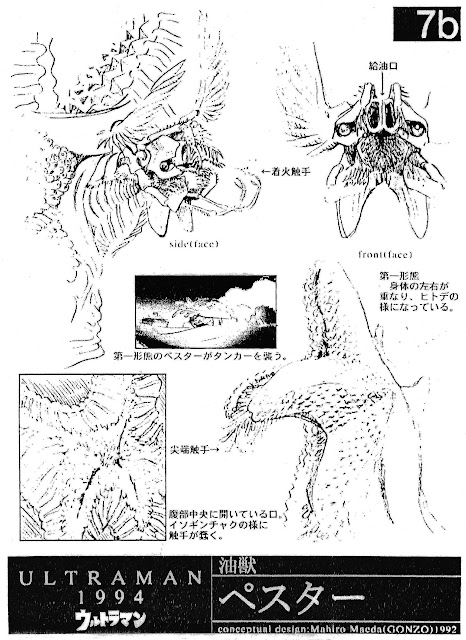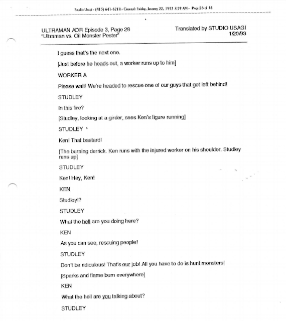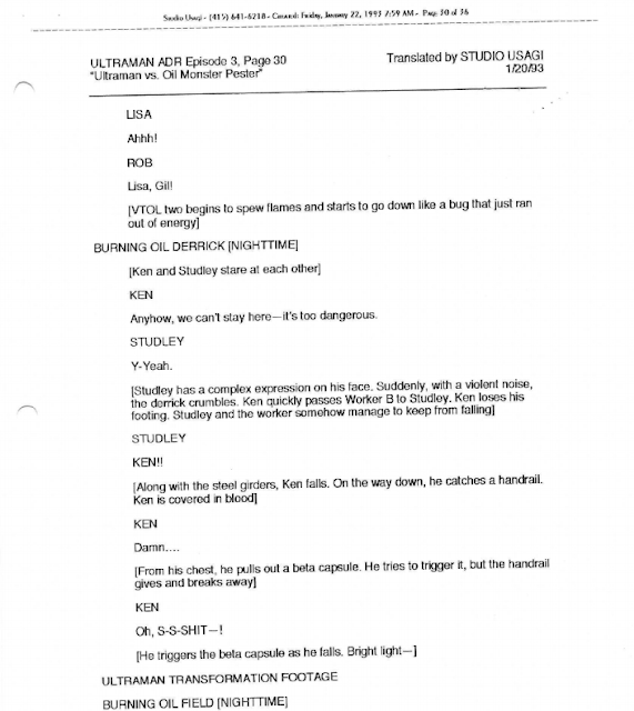 BR: The source translation I received for the Pestar episode was actually an ADR – automated dialogue replacement – script used for the purpose of dubbing the [original] Japanese-language show into English. The ADR script had the title “Ultraman vs. Oil Monster Pester.” Again, I was given two pages of monster illustrations so I’d know what the creature, and the toy product tie-in, looked like. For this episode, I also got a short memo from King with a punch list of changes he wanted me to make, including: